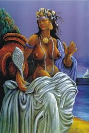 IEMANJÁ - Violentada numa relação incestuosa gerou os orixás.Através de uma poção mágica conseguiu ir para o mar. Dela nasceram as estrelas: " Assim, graças a iemanjá, o Sol pode dormir. À noite, as estrelas velam por seu sono, até que a madrugada traga outro dia.".Dona de rara beleza, caprichosa e apetites extravagantes.Mata seus amantes - pescadores jovens e bonitos - no mar...Diante da injustiça, é furiosa.Seduz, também, com atos histéricos, profundamente dramáticos.recusou a servidão doméstica e se fez a senhora das cabeças.